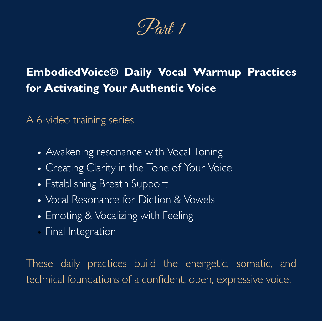 An EmbodiedVoice® collection designed to activate your authentic voice, strengthen your technique, and deepen your embodiment.